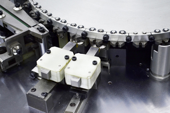被測試元件通過振動(dòng)盤振動(dòng)送料,進(jìn)入無振動(dòng)直線送料系統(tǒng),經(jīng)入料夾傳送至分割器圓盤夾,在測試工位經(jīng)過測試後,再由圓盤夾傳送至相應(yīng)的落料口,電磁閥驅(qū)動(dòng)氣缸開夾落料,被測試元件經(jīng)落料管道進(jìn)入指定的分料箱,不良品落入廢料箱。
